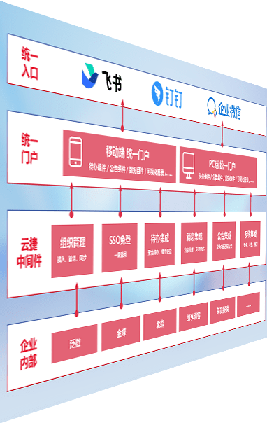 对协作平台提供支持服务,,支持企业应用与协作平台对接,,,,包含组织同步、、、、消息集成、、待办集成等。。。支持目前主流的协作平台:钉钉、、、、企微和飞书。。。